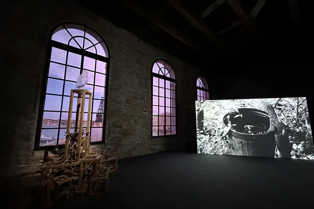 本次展出肖像油画《胶园管工》,突出了人物日晒劳作的古铜肤色以及沉着坚毅的神情。另一幅水墨肖像画《拉二胡》,是林木化刻画自己的父亲在拉二胡的神态。林木化刻画戏班幕后场景尤具代表性,2006年受陆路交通管理局委托,在滨海地铁站创作大型壁画《演出即将开始》。网上有段视频拍摄林木化,他讲述自己骑一个多小时脚踏车到美专学画的过程,以及为何他选择描绘活生生的街戏后台人生。