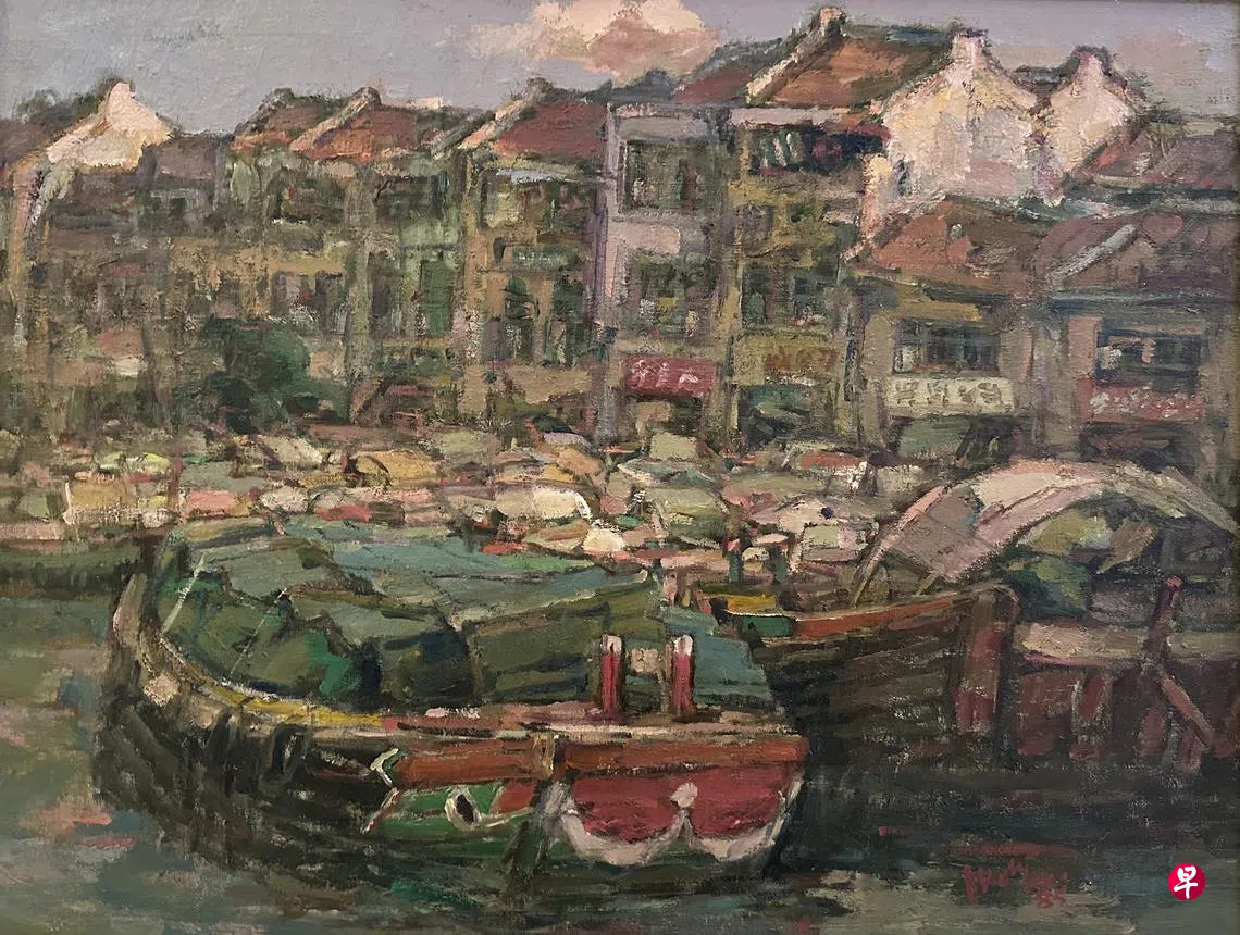 展出的静物画有花卉、蒜头、螃蟹、橘子、梨、古甕等组合,表现人们市井生活中的日常和烟火气,让观者感受到远离喧嚣的宁静。展出的风景画题材包括新加坡河、牛车水、福建街、安祥路等旧街道,用明快的色彩和光影描绘街头氛围和时代气息及本地传统建筑,在保留历史痕迹和人情味的同时,反映多元文化下的城市风貌。