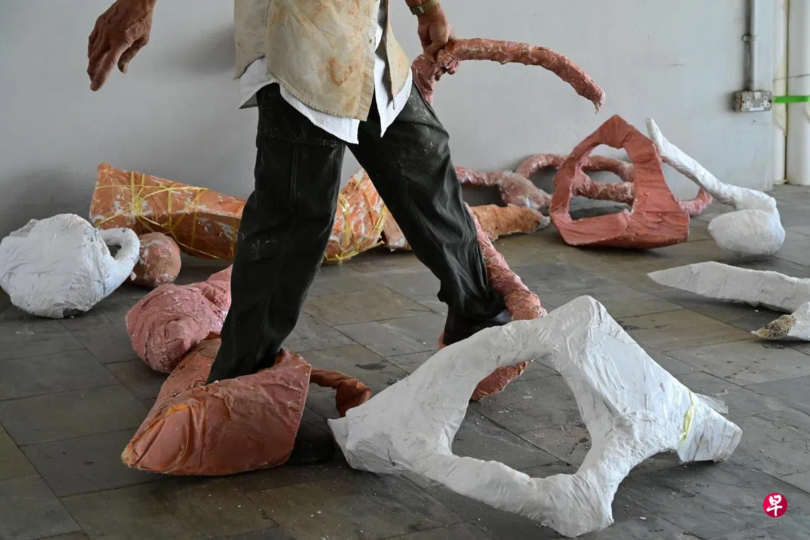 新加坡当代艺术家唐大雾(82岁)在独立艺术空间“逗号空间”(Comma Space)第三次举行个展“啊 原来如土”(Who Care? 1&2 You & Me)。唐大雾是东南亚当代艺术的奠基者之一,他的实验性艺术实践广受认可,涵盖行为艺术、装置、绘画和合作性创作。本次展览延续了他对艺术家在社会中的角色和责任的批判性思考。