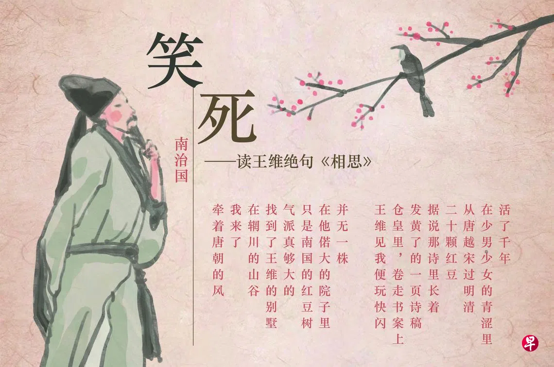 南治国这首《笑死》,以诙谐幽默的笔触解构王维的《相思》,通过时空穿越的设定,展现古典诗意与现代思维的碰撞,也传达了对情感的微妙领悟。
