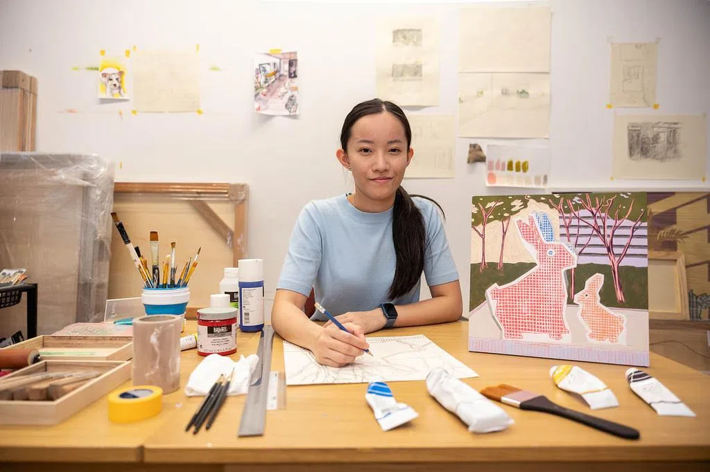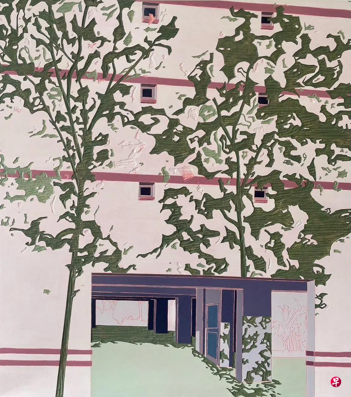 林加淇毕业于拉萨尔艺术学院,获美术荣誉学士。她以精雕细琢的木板为基底,融合绘画与木刻版画技法创作而成的作品,模糊了传统与创新、自然与人造之间的界线,展现出新加坡绿意与建筑共生的独特城市风貌。林加淇的创作关注城市日常中那些被忽视却富诗意的空间,早期聚焦于组屋空旷楼层、椅凳与公共设施等功能性物件,近年的作品比如影子系列则转向更富诗意与浪漫的表现。