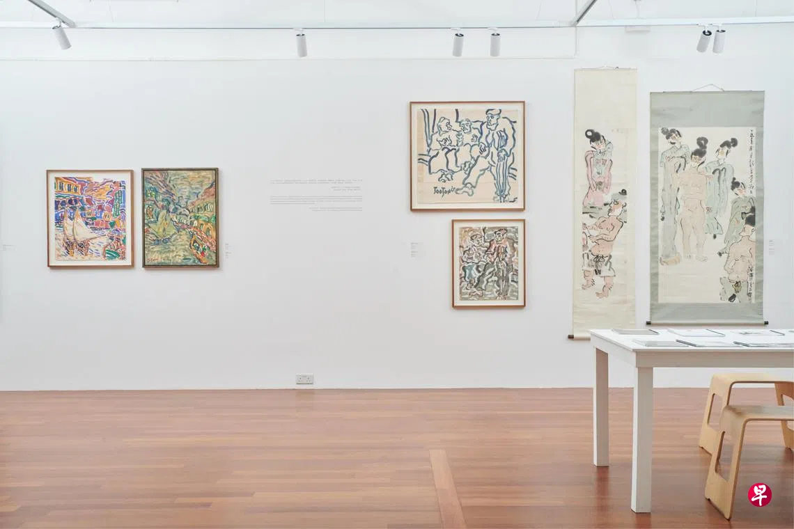 展览规模不大,近40幅作品中,油画与水彩画十几幅,作于1960及1970年代。陈有勇早期木板油画《小桥流水人家》《无题(风景)》(1969)含有中国水墨画意境。根据陈有勇太太,他1968年就开始创作水彩、水墨画。9岁从中国海南移居新加坡,就读于圣公会中学的陈有勇,受擅长水墨的美术老师陈悟迟(画虎画家)与张明奎启发。