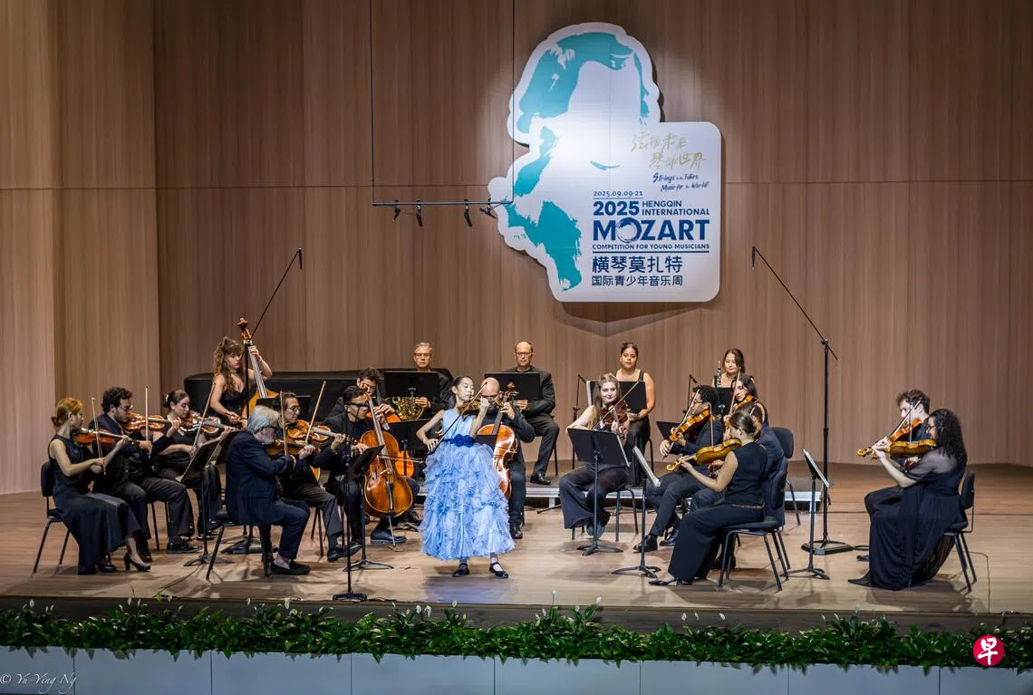 这项原名“珠海莫扎特国际音乐比赛”的赛事,2025年迈入第六届。陈希就读道南学校,在南洋艺术学院的少年儿童艺术学校,师从叶琳学小提琴。在9月18日的决赛中,陈希与萨尔茨堡室内独奏家合奏莫扎特《第三号小提琴协奏曲》,赢得评审青睐。