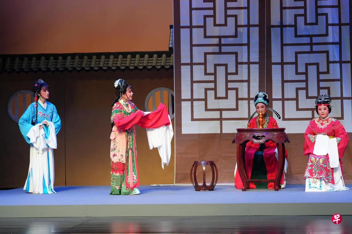 中秋节前的周末,三江梨园社推出年度大戏越剧《西厢记》,婉转悠扬的越曲再次响彻国家图书馆戏剧中心。继两年前搬演全本《祥林嫂》后,这次选择古装传统戏,更考验演员的唱功与身段。梨园社坚持搬演经典,既丰富本地舞台,也在推广华族戏曲文化方面作出积极贡献。