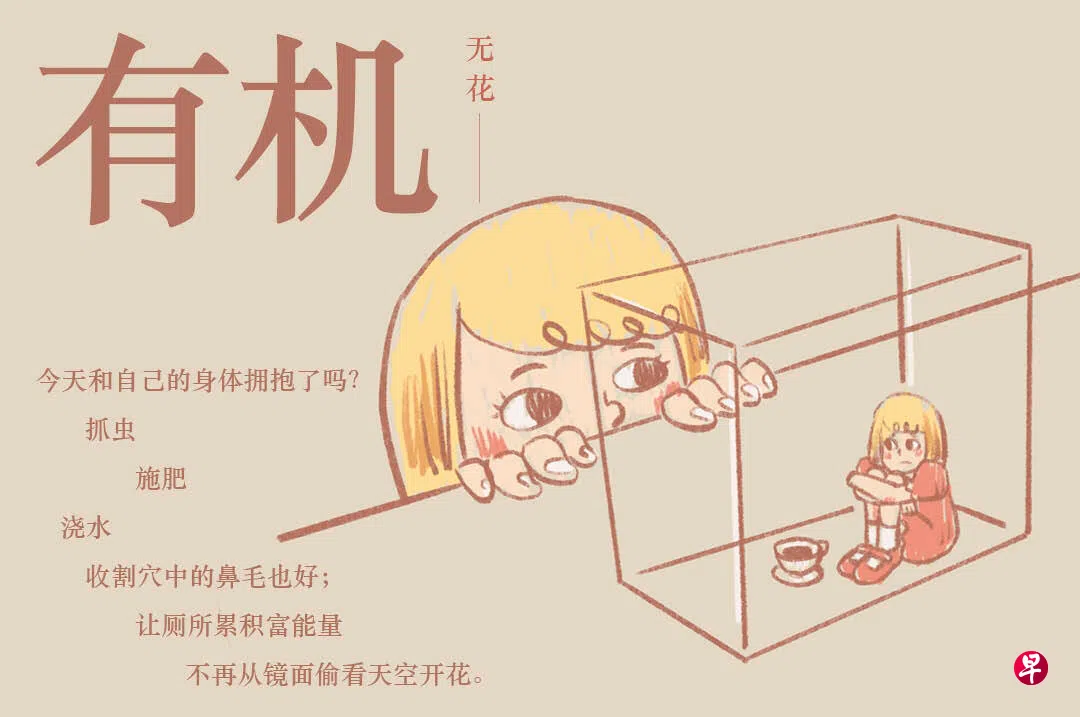 无花的这首《有机》以独特的诗性语言,反观现代人类自我疏离却又渴望回归的生存困境。在迷失自我的现代社会,《有机》希冀一条自我对话与超越,恢复生命整体性的可能路径。