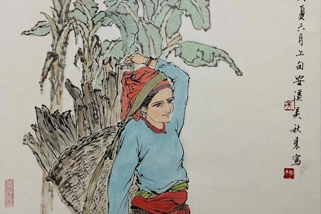 何明亮字白沙,多以太行山及山东青岛崂山为题材,画作线条苍劲简逸。他的近期画作吸收泼墨泼彩技法,参以传统写实笔意,尝试赋山水画意境予新的时代感。吴秋来作品多以印度拉贾斯坦的骆驼与人物生活为题材,以流畅的笔墨来描绘人物造型,配以生动多变的骆驼动态,饱含北印度风情。他本次展出两卷描绘尼泊尔集市的2米长卷。