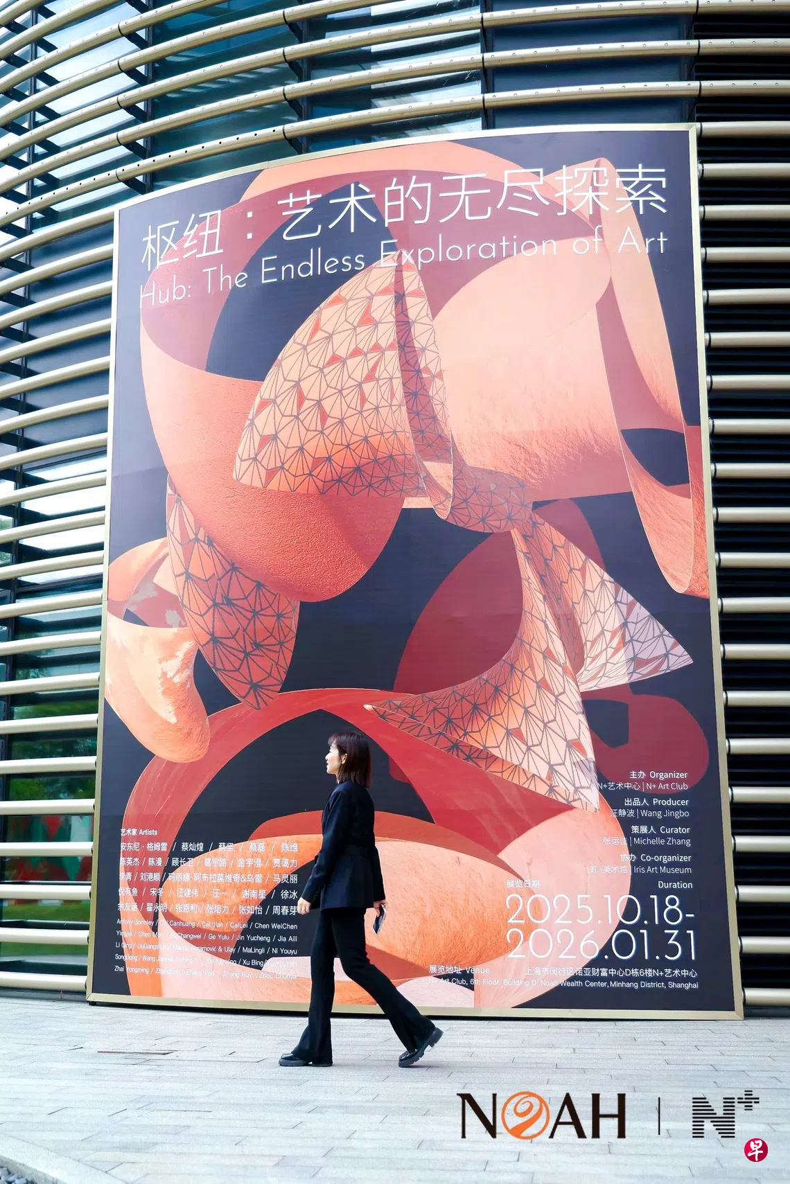 《枢纽:艺术的无尽探索》展览将于2025年10月18日至2026年1月31日在上海市闵行区诺亚财富中心6楼N+艺术中心展出,更多展览信息可访问链接:https://m.damai.cn/shows/item.html?itemId=983574322425。
