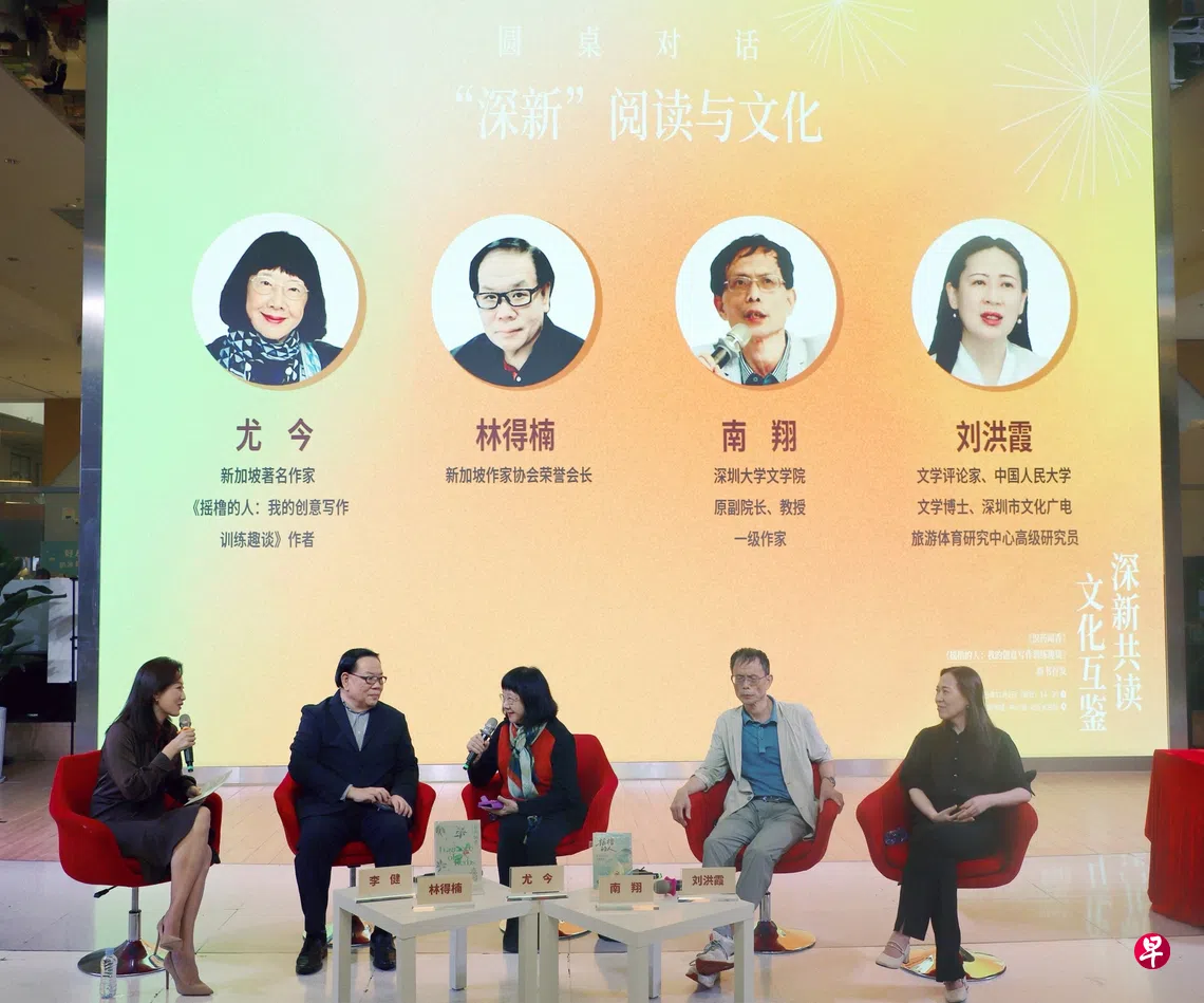 第26届中国深圳读书月日前开幕,新加坡作家尤今、玲子传媒出版社社长林得楠与总裁陈思齐应邀出席“深新共读·文化互鉴”交流活动,与深圳大学文学院原副院长南翔教授、文学评论家刘洪霞博士对谈。