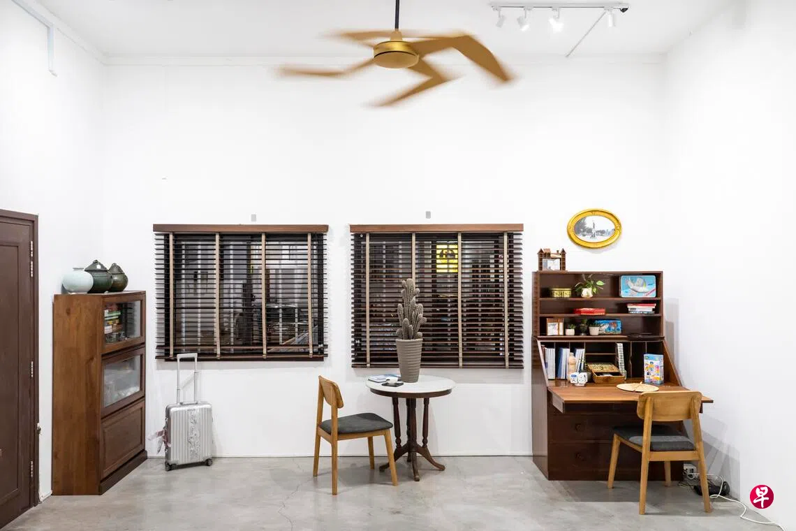 书桌墙上有中国当代艺术策展人栗宪庭的大字《孤寂》。桌上有中国焦西朋的书册《捡拾家庭博物馆》。庭院有新加坡陈赛华灌的黄铜水龙头装置《当我们同在一起》,中国柳溪用瓷器制造老搓衣板来表达母亲对家庭无条件的奉献。