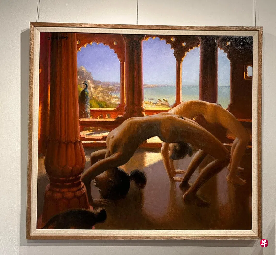 其中一组裸体画近作描绘做瑜伽的女性,萧学民说:“全世界都有画家在画人体画,但是姿势大同小异。作为画家就要找别人没画过的,瑜伽人体画没人画,我就画。”