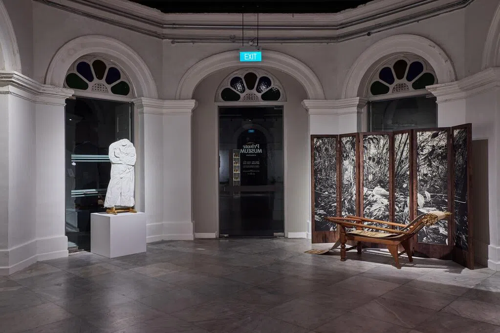 Chaos Gallery展出刘敬贤为小说创作的四幅油画(李光耀、陈福财、陈福财母亲的肖像画)、书中八个漫画角色(包括阿发的巨型机器人)水墨原稿、复制品等,展现作品叙事的复杂性。
