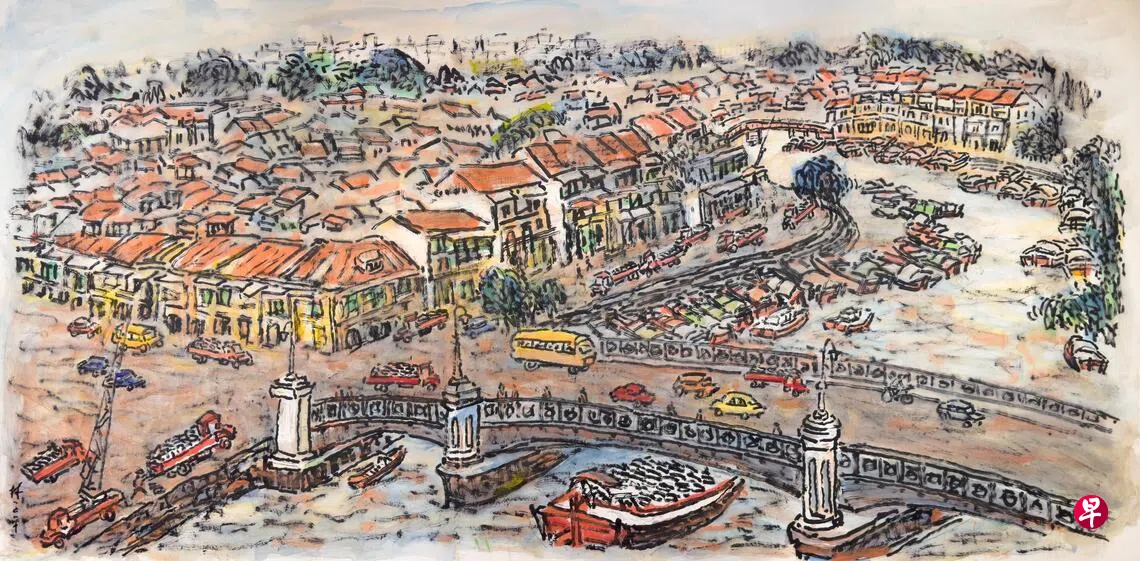 自2000年代起,林子平的色彩更丰富,并保持对日常场景的细致观察。《牛车水柚子市集》的浓烈朱红色调,唤起农历新年欢庆氛围。长2.5米的《永流的新加坡河》以柔和的暖粉为色调。《新加坡精神》以哥里门桥为起点展开壮阔全景,以奇幻明亮的色调凸显车辆与建筑群。到了2020年代,《新加坡河回忆》重现相同场景时,采用富表现力的自由线条,刻意精简细节,并以饱和色彩充盈画面。
