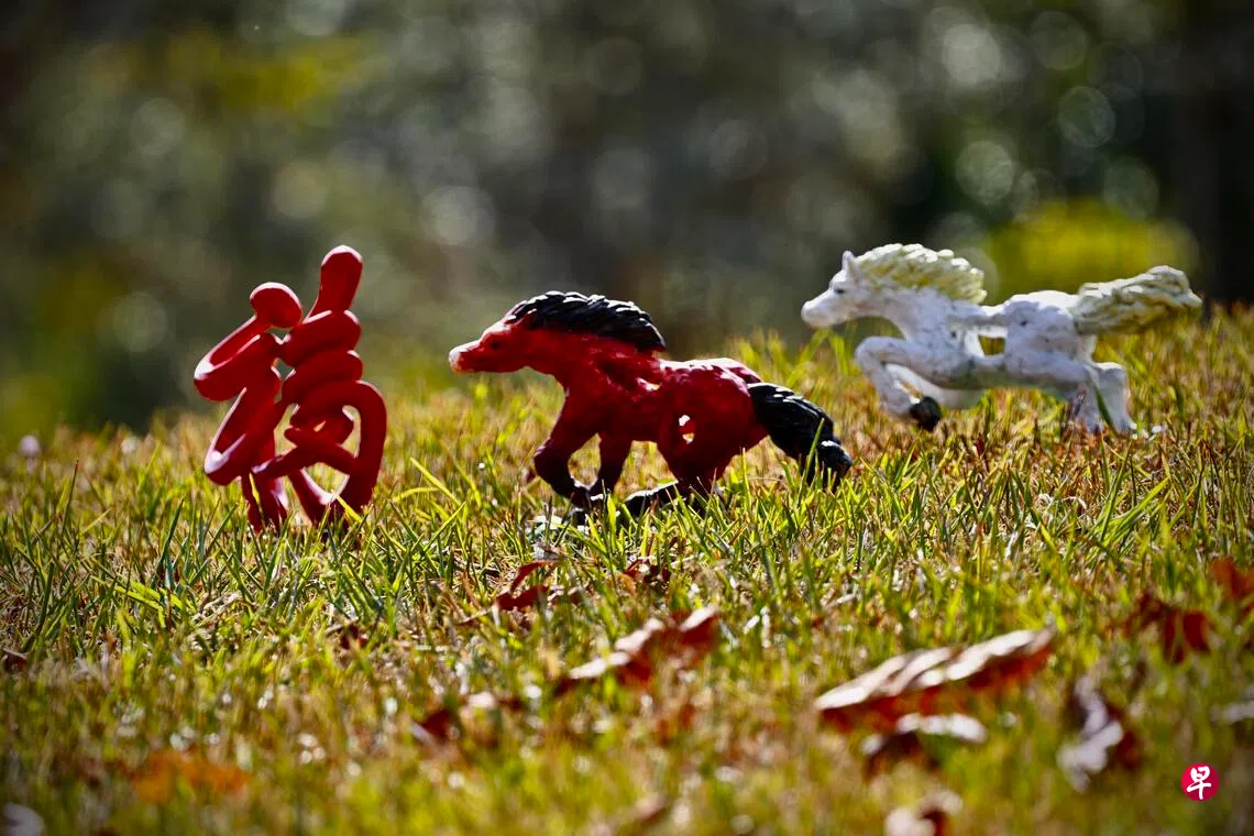 蔡汶家接受《联合早报》专访时说,人们对马的认知少之又少,2025年,他到不丹旅行时,见过树下几匹马的风姿。这系列雕塑是以《历代名家画马》(上海书画出版社)为参考,将历代名家各种写生、临摹的画马造型融合,发挥想象创造,化为立体雕塑。他留意到清代宫廷画家郎世宁《柳荫双骏图》《郊原牧马图》画中白马身上的斑点,《十骏图》之《赤花鹰》的斑纹,《红玉座》的赤色,近代画家马晋《墨马图》马身黑白相间的斑纹,加以借鉴。