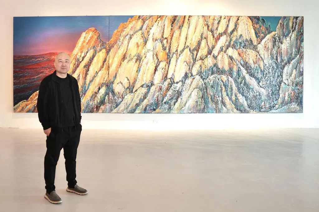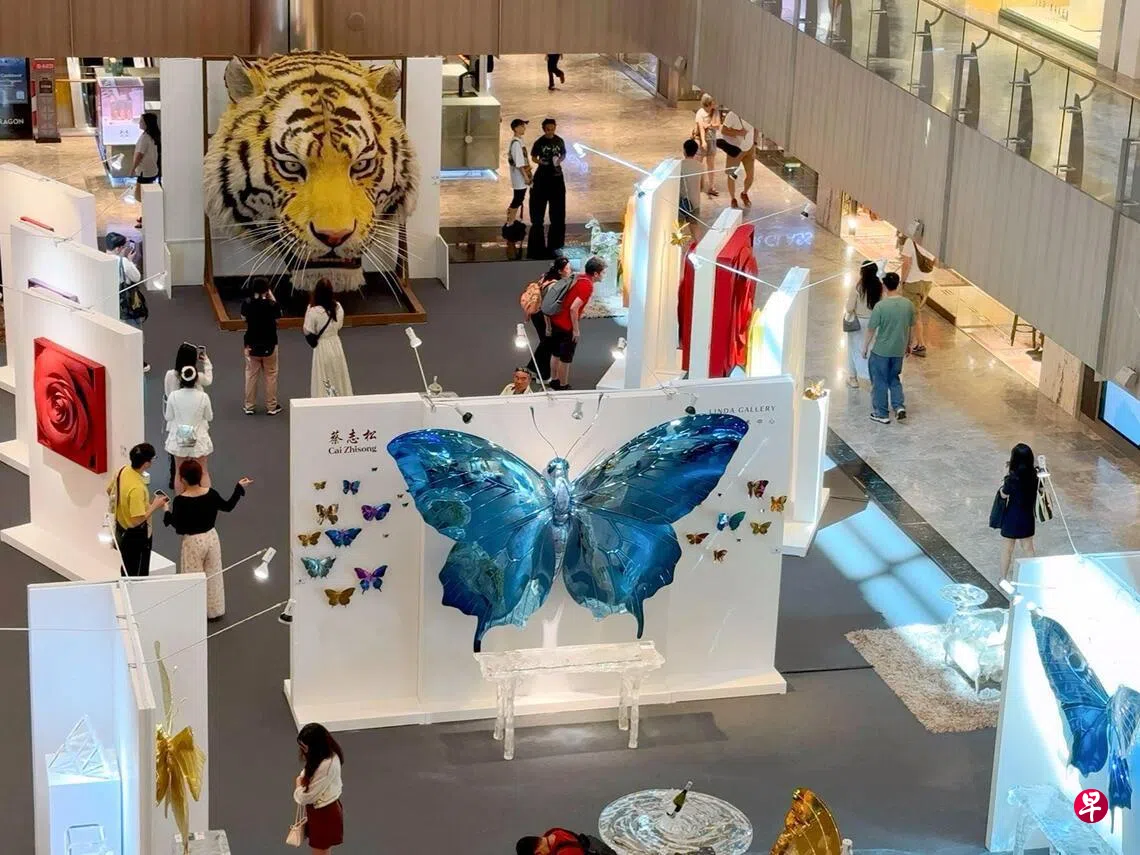 从2016年起,蔡志松创作“家园”系列,通过荷、⼭⽔、蝴蝶等传统意向构筑微缩家园景观。“玫瑰”系列是普世的爱与最纯粹的美的象征,它化作⼀种符号,在凋谢与绽放、⾊彩与重量之间对抗⽣命的流逝,从另⼀维度展现家园与情感的温暖。不论形式如何改变,蔡志松的创作始终深耕东方美学与当代雕塑语言的融合:不锈钢的灵动与光泽为蝴蝶注⼊鲜活的⽣命⼒;⾦属与⾊彩的结合使玫瑰得以跨越时间的厚度⽽盛开。细节、肌理与技法的相辅相成使作品超越对⾃然的刻意模仿,形成精神层⾯的映照,在⼈与⾃然之间找寻和谐共⽣的平衡。