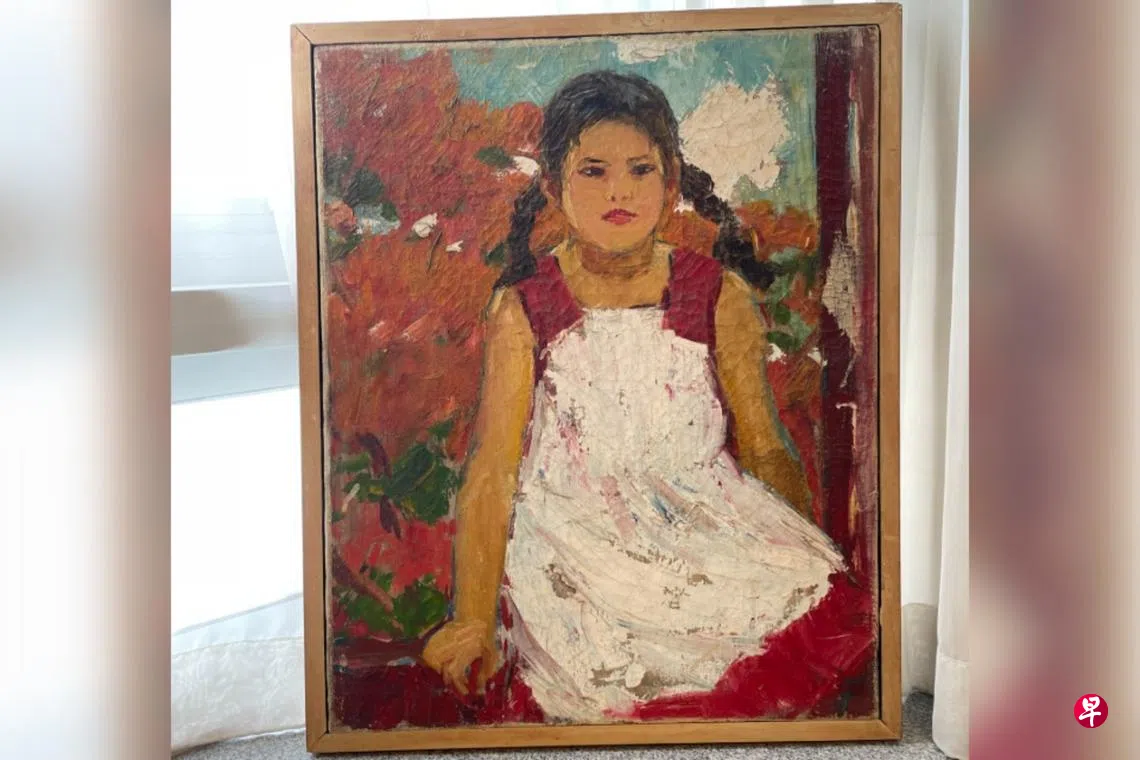 直到看到画家叔叔的吃惊表情,还有一旁爸妈不知所措,女孩才发现自己泪眼汪汪。那次怎么收场她印象全无,只知道自己5岁的模样,从那天起被挂在家里的墙上。