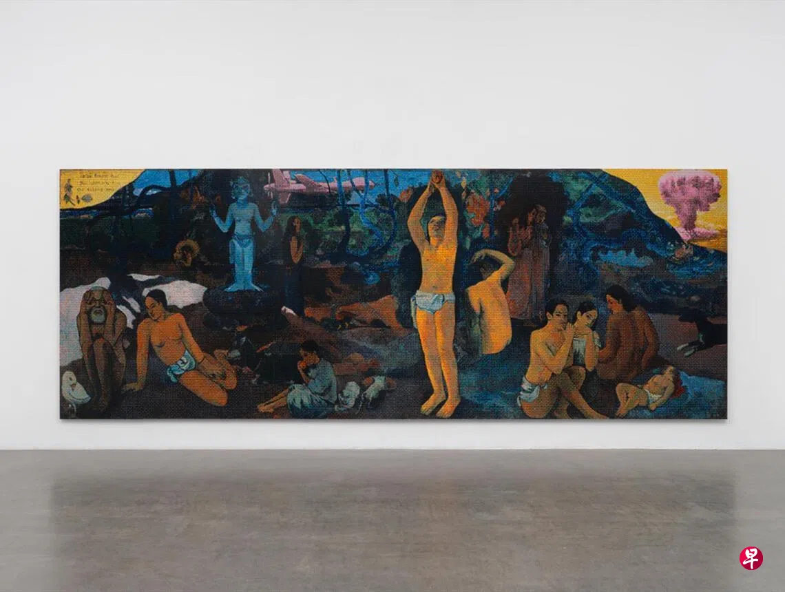 带有游戏拼图意味的作品《麦田与乌鸦》中,无人机取代飞鸟,历史绘画被置入当代技术语境,暗示战争、监控与社会不安渗入日常。艾未未通过对比和叠加,重新诠释高更著名提问《我们从哪里来?我们是谁?我们要到哪里去?》,构建一架无人机、广岛原子弹爆炸的场景以及艺术家作为土著人物的形象。