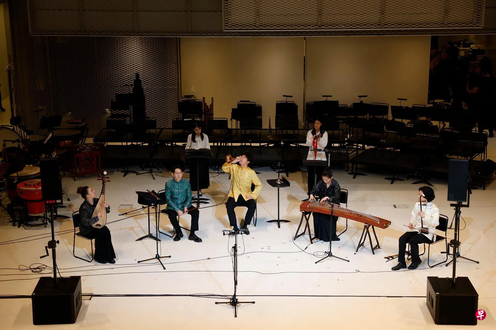 4月10日晚,由南洋艺术学院华乐系和新加坡华乐团呈献的校园音乐会在密驼路的国家设计中心举行。这场音乐会极具实验性,打破传统舞台与观众坐席的刻板格局,让观众在立体视听布局中感受华乐的典雅意境。