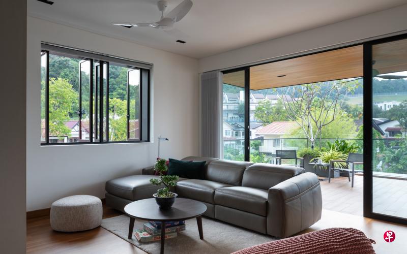 基本而言,房子内部的整体设计属于现代极简主义,但融合了带南洋风味的家具摆设,新旧结合,养眼舒适。由于受到疫情影响,装修工作花了10个月才完成,但若从概念设计开始到整体完工,足足花了一年三个月。这栋房子由于是全新设计,并与房子的建筑施工同时进行,包括地砖和木匠工等在内的装修费用为30万元。