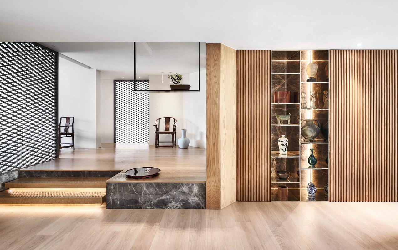 负责装修设计的Upstairs_室内设计事务所创办人兼首席设计师卓康伟(Dennis Cheok)说,屋主夫妇对中日文化情有独钟,在冠病疫情暴发前经常到中国和日本旅行,带回古董、家具、好茶等,平日居家,他们喜爱饮茶,赏玩这些古董、珍物,品茗精致人生。设计师根据屋主的喜好,将传统日本屋的室内格局与细节融入北欧的简约风格,设计出更适合本地现代社会与时空的品味居所。