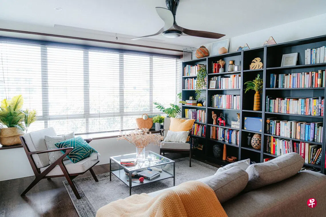 设计师说,屋主夫妇都很爱阅读,本身的藏书也很多,于是就把客厅变成一个大书房。他透露:“我用的书架是在宜家买的,占了整面墙,只花了500元左右。”