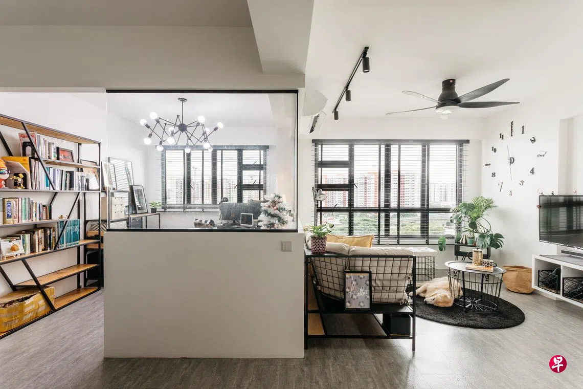 主色调黑白,走工业风路线的这个组屋单位,设计师用巧思,以建材、家具和摆设品缓解单调与沉重。