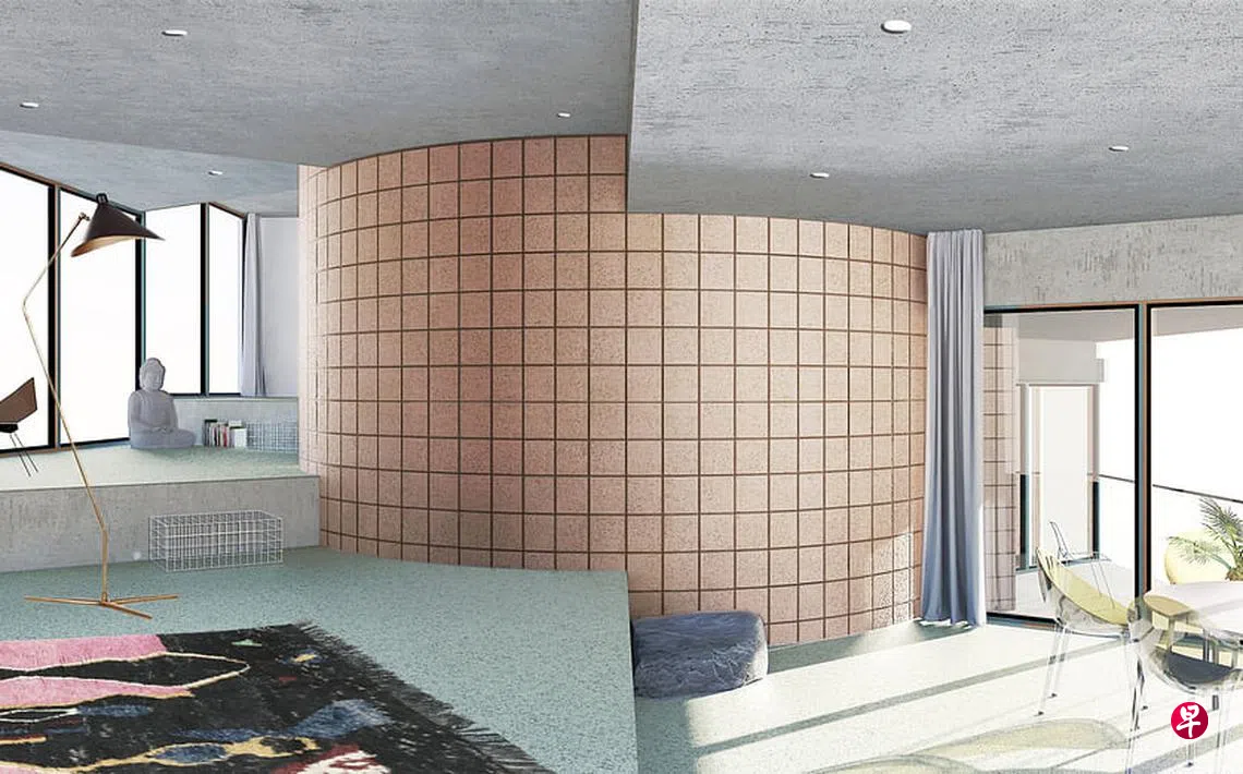 根据设想,项目位于建筑间的空隙上,由八个住宅单元组成,总计建筑面积1000平方米。整个建筑通过集中的大楼梯螺旋式向上连接在一起,它为生活空间增加了一个额外的维度,并为每个公寓单元提供了上下平台。