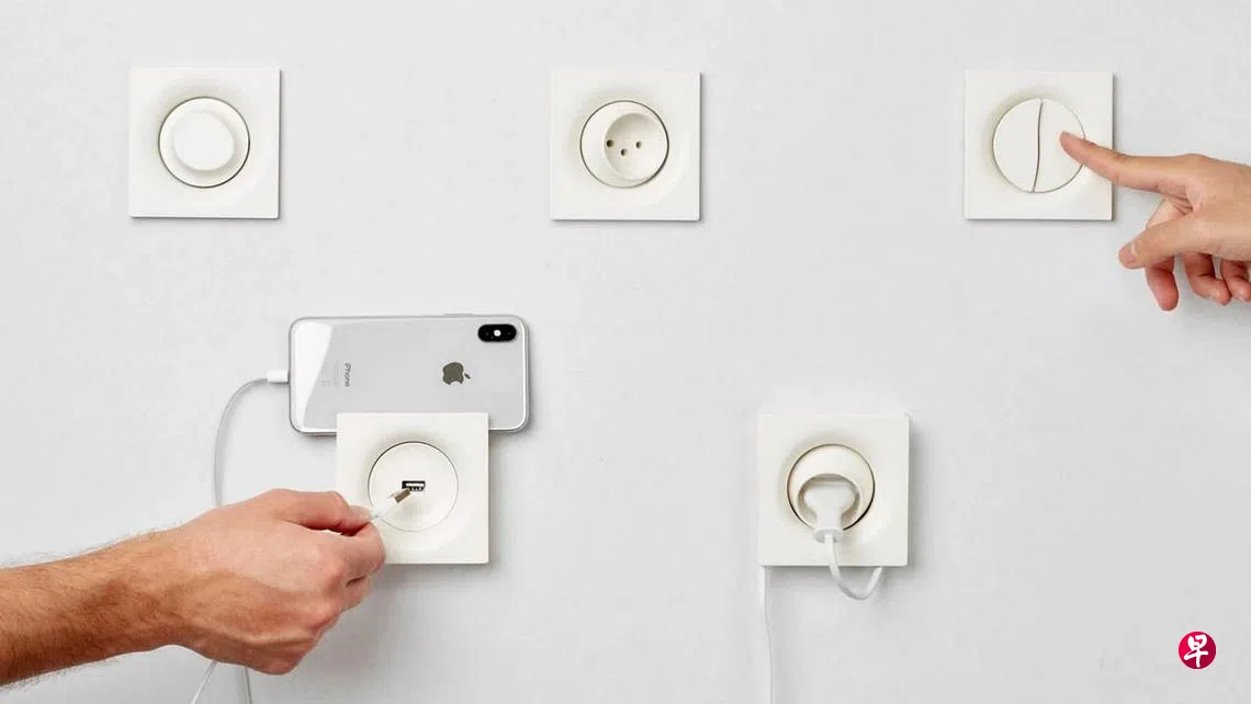 瑞士洛桑艺术设计大学毕业生Souhaib Ghanmi,设计了一系列用牛骨制成的电插座,惊艳设计界。他把肉类工业所丢弃的牛骨磨成粉,掺入从骨胶原和股骨神经萃取的生物类黏合剂,制成可媲美塑料的原材。他也将人体学概念融入电插座和电源调节器的设计。电插座设计模仿人的股骨在髋关节里转动,插入电线时可随意转动,可保护电线不那么轻易损坏。电插座四周的凹槽可卷起收纳电线,也可放置手机充电。