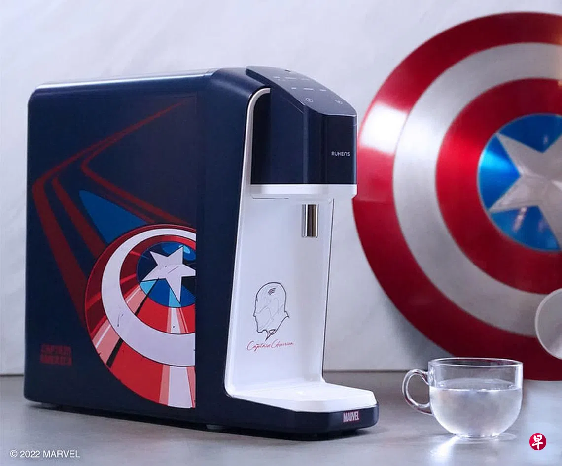 净水器品牌Ruhens推出两款为漫威迷与漫画爱好者特别设计的新型号V Series Marvel Edition净水器,分别以超级英雄美国队长和钢铁侠为设计主题。两款型号采用两个英雄人物亮眼的代表色系,蓝色代表美国队长,红色代表钢铁侠。