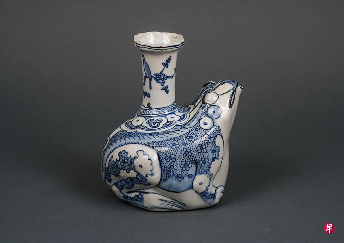 泥火形色中国古陶瓷订户赠阅文章明代万历克拉克瓷,青花蛙形军持,品质特好特珍贵。(中华陶瓷学会提供)报道⊙黄向京摄影⊙叶振忠中华陶瓷学会为庆祝成立18周年,举办两场大型的会员收藏陶瓷展。第一场展览“泥火形色之一:中国陶瓷五千年”,汇集会员们约150件私人珍藏,展现从新石器到民国时期由陶到瓷的发展历程,推广公众对陶瓷的认识。第二场将在明年2月底推出。南洋艺术学院展览上一篇纸水相遇造环保家具下一篇陶瓷器皿诉心声购买此文章