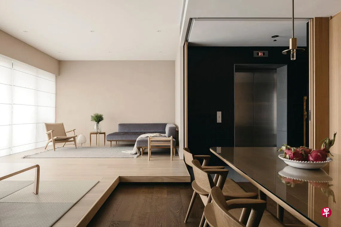 这是位于诺维娜(Novena)一带的公寓,屋主是一对三四十岁的医生夫妻,育有一男一女。男屋主出生于台湾,在新加坡长大,太太是新加坡人,两人都非常喜欢日本美学,负责室内设计的Monocot Studio为这户人家的住所打造了现代日式风格。它代表了一种重空间的简洁性,不必有过多繁冗累赘的装饰,明快舒适的空间更写意。
