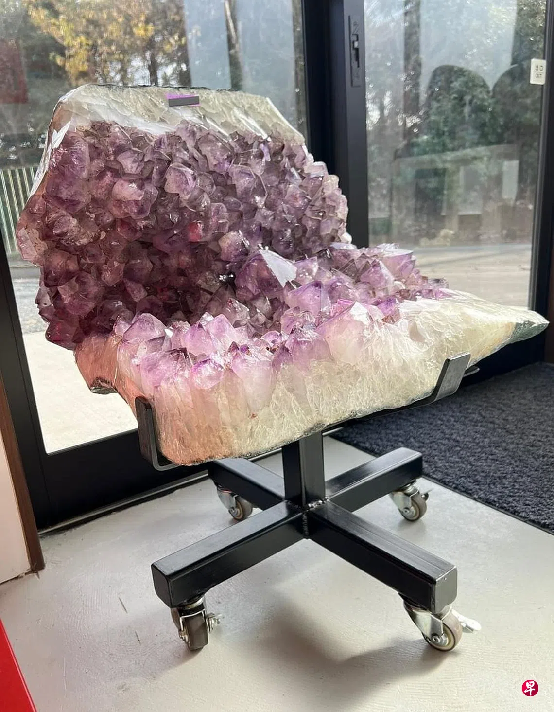 有些人喜欢在家中摆设可调节风水的装饰品,据说紫水晶可招财,也是最常见的风水石。日本一家玉石贩售公司,就将紫水晶做成椅子,售价45万日元(约4560新元),椅子的照片曝光后,引起网民热议。