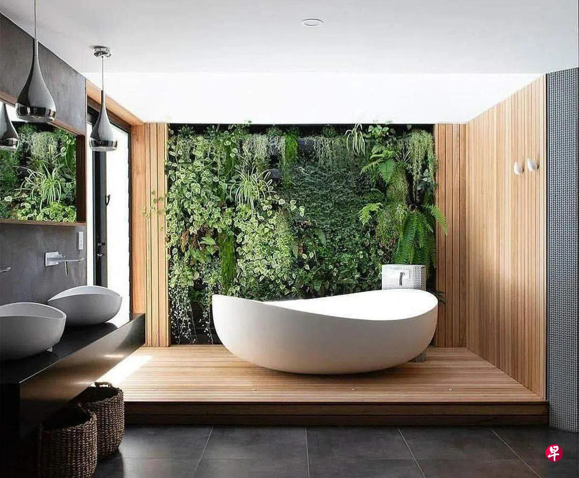 自然元素融入浴室,能让身心有更积极的体验。 (互联网)