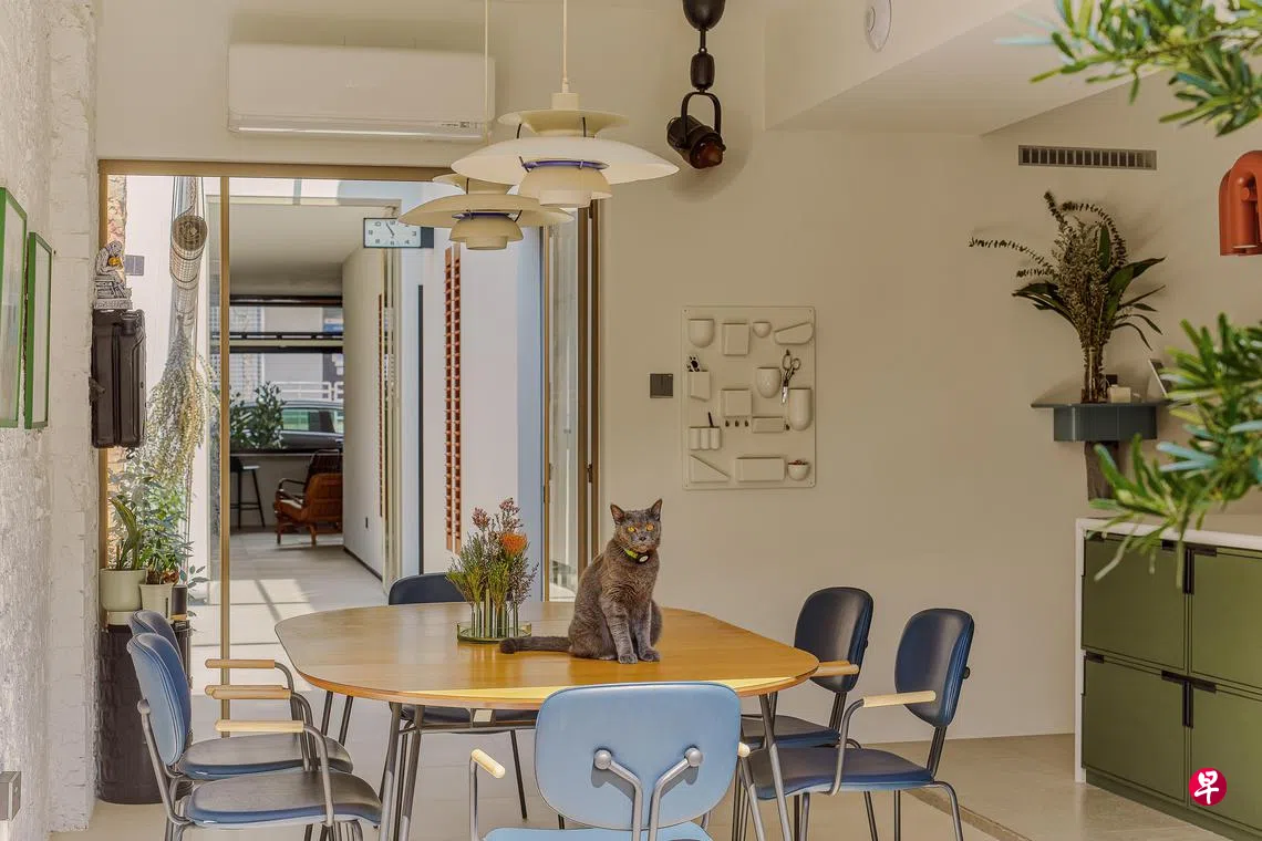 即使在以功能性为主要设计目标的新加坡住宅装修中,也有心态开放的业主,让设计师根据实际所见,配合业主具体需求,一起协商出合意的审美风格。中世纪现代风格家居,在本地少见,设计公司MET Interior的设计师郑仰贺根据业主的房型、结构和生活特色,将这间作为住宅的店屋,打造成独特又宜居的中世纪现代风居室。