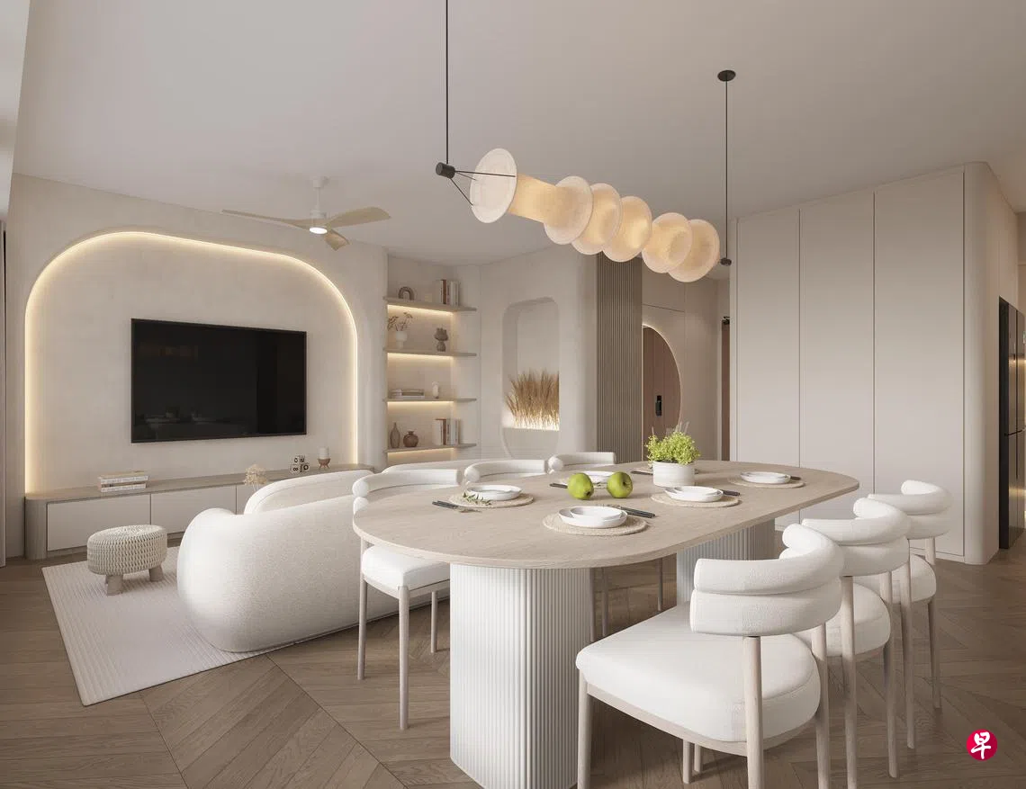 这个单位的另一个特色,是运用很多有弧度的线条,如弧形、拱形等设计,屋主觉得以后有小孩的时候,弧形边角会比尖角来得安全。