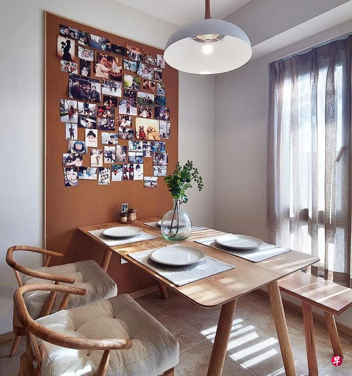 收纳橱柜上方的白墙若显得空荡荡,可选挂一些自己喜欢的照片,每次使用收纳柜时,抬眼就能看到心仪照片,心情随之一亮。