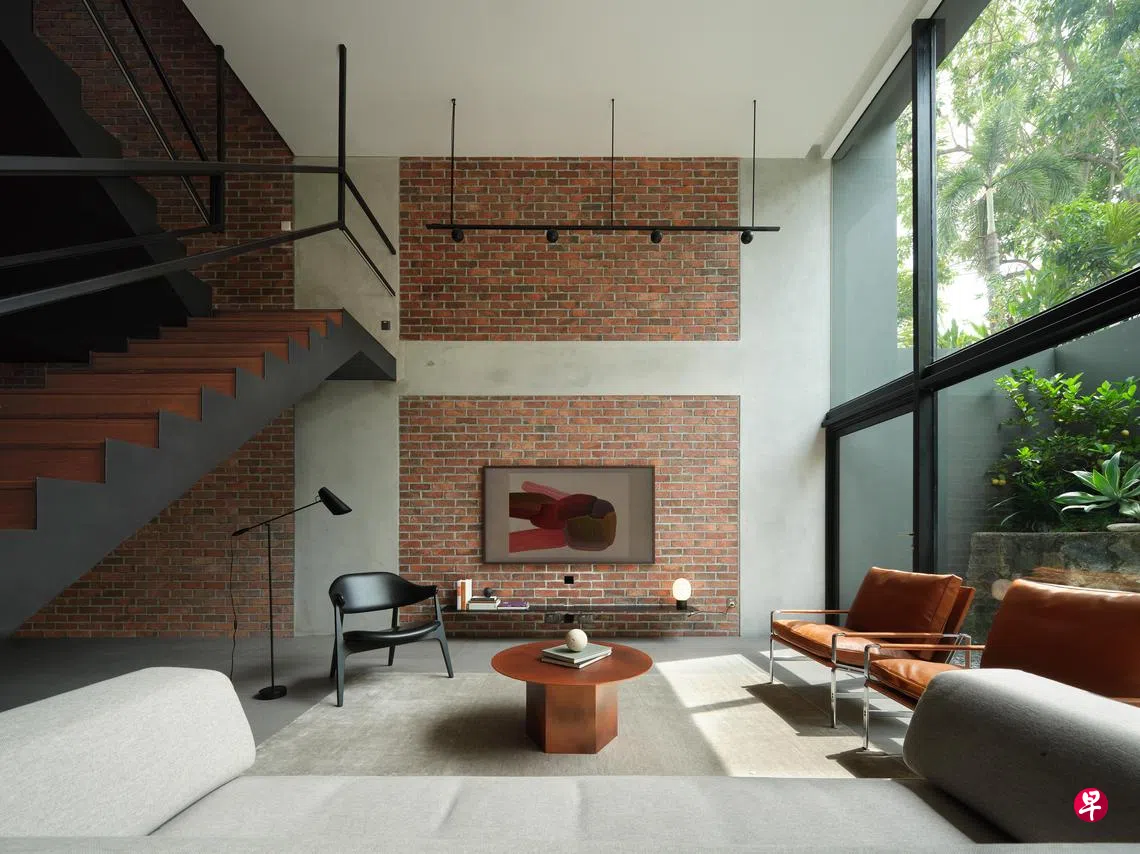 这是一栋位于巴耶利峇上段的排屋。屋主是一对40多岁夫妻,男屋主是飞机师,女屋主是家庭主妇,两人育有一对子女。负责屋子室内设计的Atelier Here事务所创办人林方杰说,这栋排屋原本是两层楼,由于房间不够用,因此改造成四层楼。设计倾向现代风带一点复古乡村韵味,主要运用红砖和混凝土等材质,展示现代乡村风质朴精致的美学。