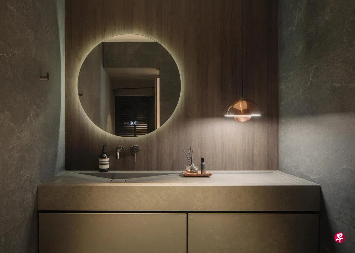 屋主是KDOT Studio室内设计公司创办人王梓耀,他的太太从事会计工作,两人育有一个9岁女儿和一个6岁儿子。他们的家居风格倾向简约风,王梓耀说:“我们的家时常充当类似陈列室(showroom)的角色,让客户看家居设计。我们有五个厕所,设计风格都不一样,有时顾客不知道自己想要怎样的厕所设计,带他们参观我们的厕所,他们就会说‘就是要这样的设计’。”