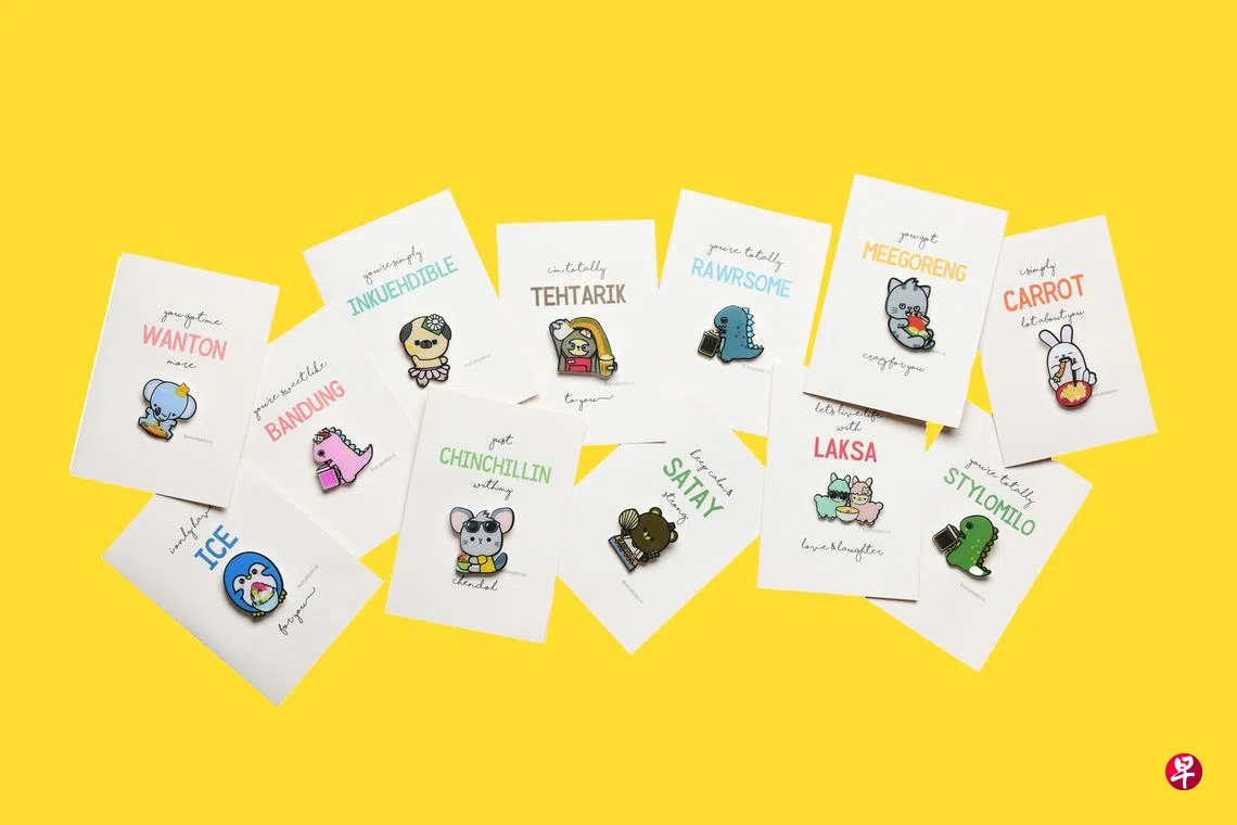 Artably目前有超过12款公仔,细看之下,这些公仔还跟它们喜爱的本地美食配对,并透过食物名称的谐音为它们构思出暖心或励志小口号。譬如小白兔的“我想菜头(猜透)你的心”(I Carrot Lot About You);沙爹小熊的“加油!你行的!”(Keep Calm & Satay Strong);小灰猫的“我为你狂”(You Got Meegoreng Crazy);羊驼的“活力热辣叻沙”(Live Life with Laksa Love)。最可爱也最受欢迎的是,与超浓“恐龙美禄”(Milo Dinosaur)饮料配对的“酷炫恐龙”(Stylomilo)。