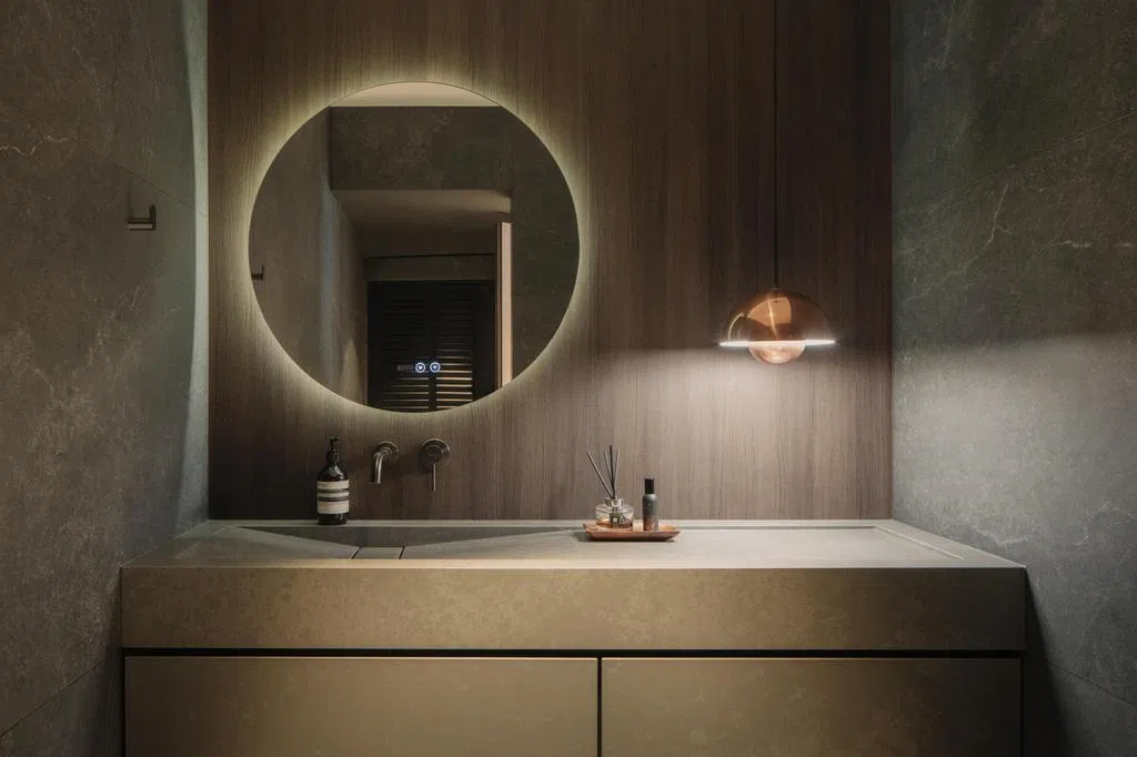 屋主是从事设计领域的30多岁单身男士。负责这家室内设计的设计师郑志坚说,屋主希望家给人一种安静、低调、内敛的感觉,同时又充满自信和风格。郑志坚将最初为两卧室、两浴室的布局,改造成一卧室、两浴室的静谧空间。