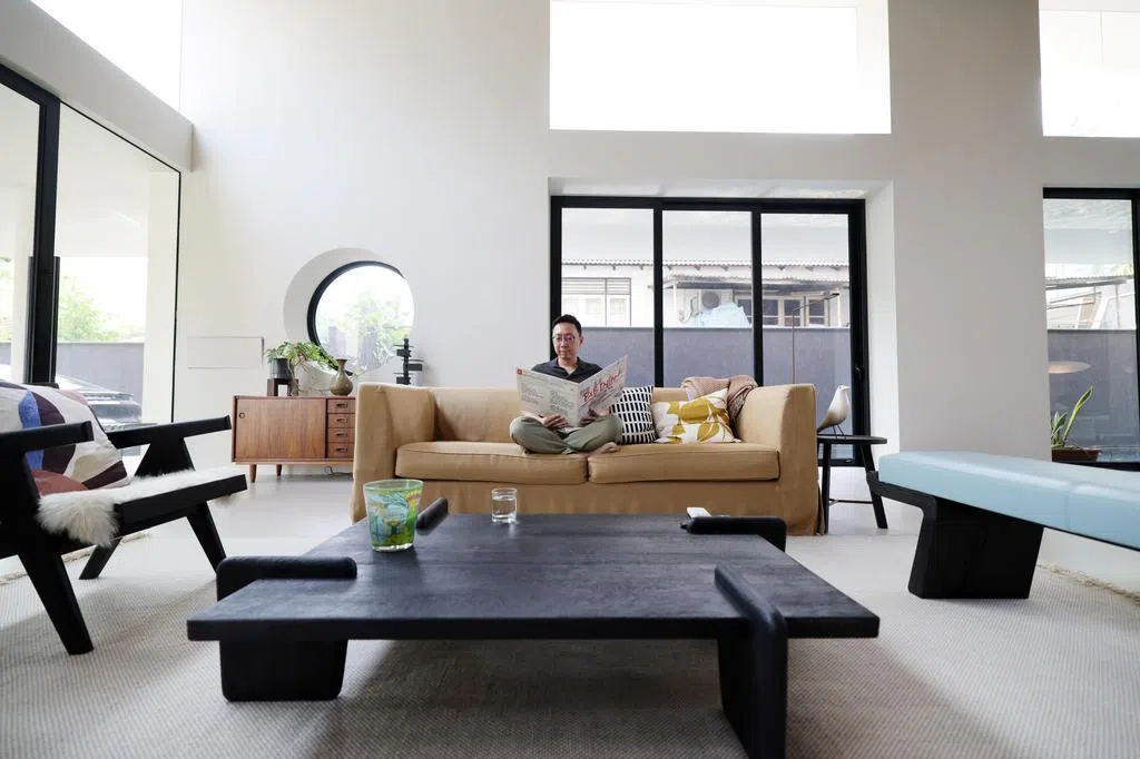 本地知名时装设计师蔡华新(72岁)的家,有如私人艺术展厅,展示许多他收藏多年的艺术品。他的家坐落于汤申路上段春叶(Springleaf)一带,三层楼的半独立式洋房,有六个房间和一个游泳池,建筑面积约5600平方英尺。家居反映了屋主对缤纷色彩的喜好,且带有现代东方韵味,复古中散发活力。他将搜罗自世界各地的艺术品和家具随意摆放,乱中有序,展示出个人风格。