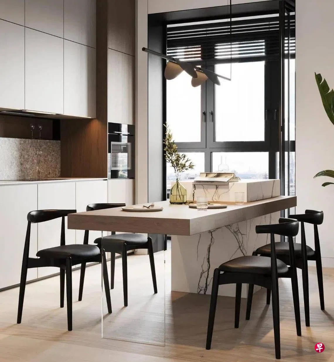 餐桌纯粹是每日三餐的地方,还是临时办公的角落,或是孩子写作业的地方?如果餐桌同时用来办公或阅读,可选择桌面宽敞、稳固度高且高度合适的餐桌,以确保久坐舒适。要是平日用餐频率不高,可考虑中岛延伸设计的餐桌,打造精简轻巧的用餐区。