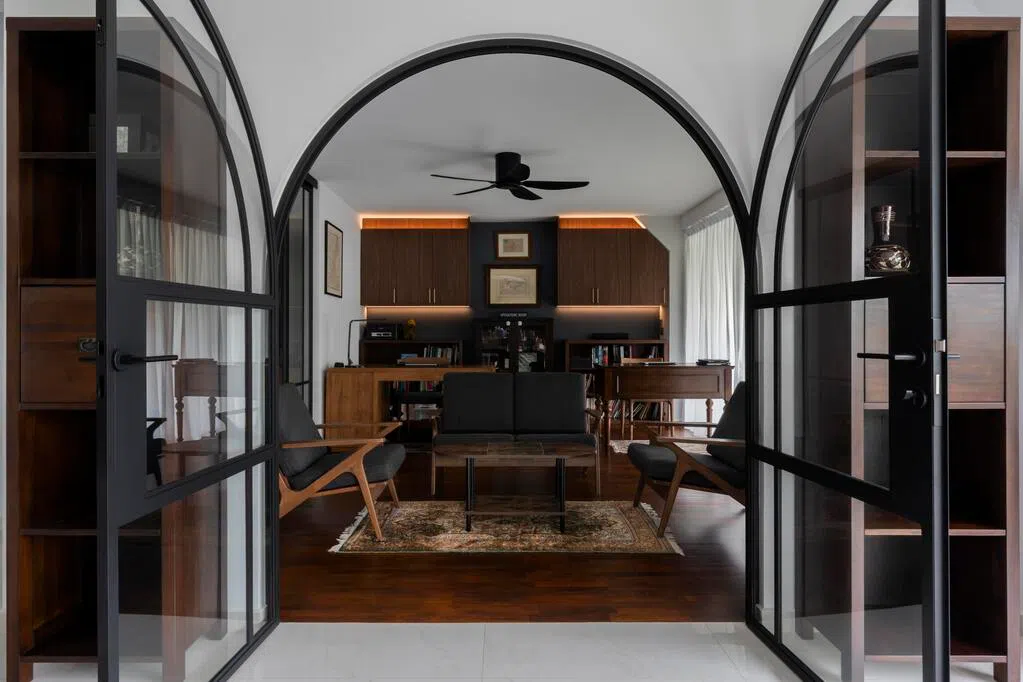 位于裕廊西的这间小宅,女屋主是45岁的金融业经理。女屋主希望家居兼具个性与手作感,同时实用耐用,适合长期居住。室内大量使用实心原木,通过裸露木梁、厚重门框、手工橱柜与大型木质家具,以厚实的质感与岁月纹理营造温暖朴实的生活氛围。