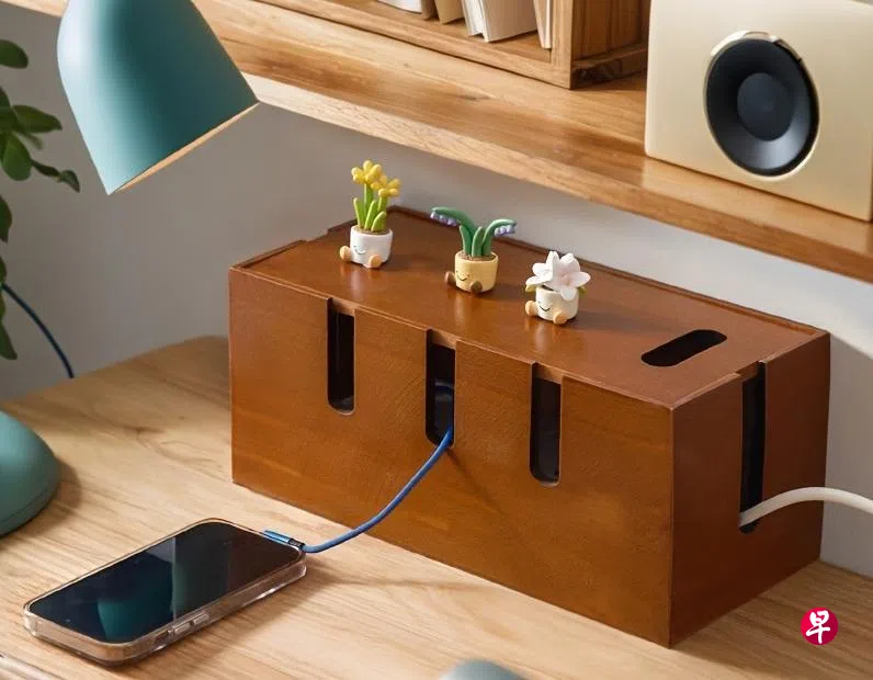 ①电线收纳盒:把插线板与插头收进盒子里,既美观又防尘。带多孔的收纳盒可单条拉出充电,无需取出整组插座,适合桌面、电视柜等多线场景。