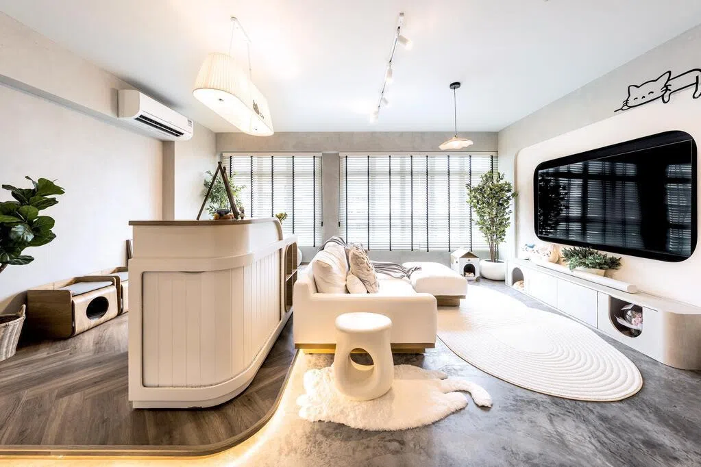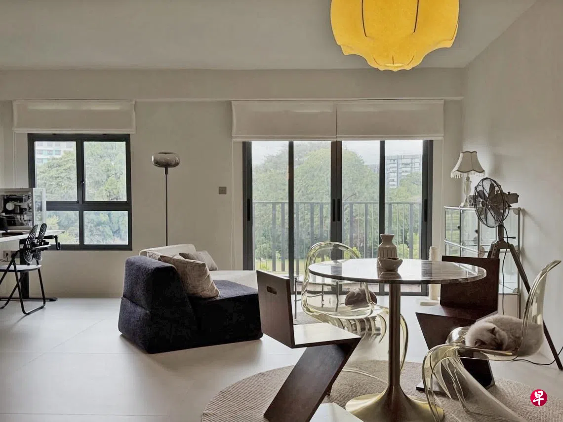 通透且易于打理的居家设计,让日常起居轻松从容。位于比达达利(ParkEdge @ Bidadari)的这套四房式组屋,由Van Hus Interior Design的室内设计师余善琌操刀改造。设计以屋主生活习惯为出发点,兼顾休憩与起居,也考虑两只宠物猫的活动动线,使整体既明亮实用,又富有个性,呈现宁静且贴近日常的居所。