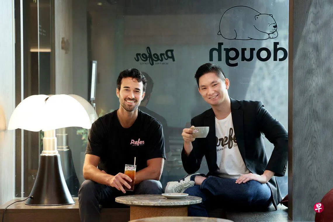 陈鼎杰与原籍美国德州,来新修读工商管理硕士的杰克·柏柏尔(Jake Berber,27岁),在创业孵化项目Entrepreneur First认识,2022年末一起创办“无咖啡豆咖啡”品牌Prefer。