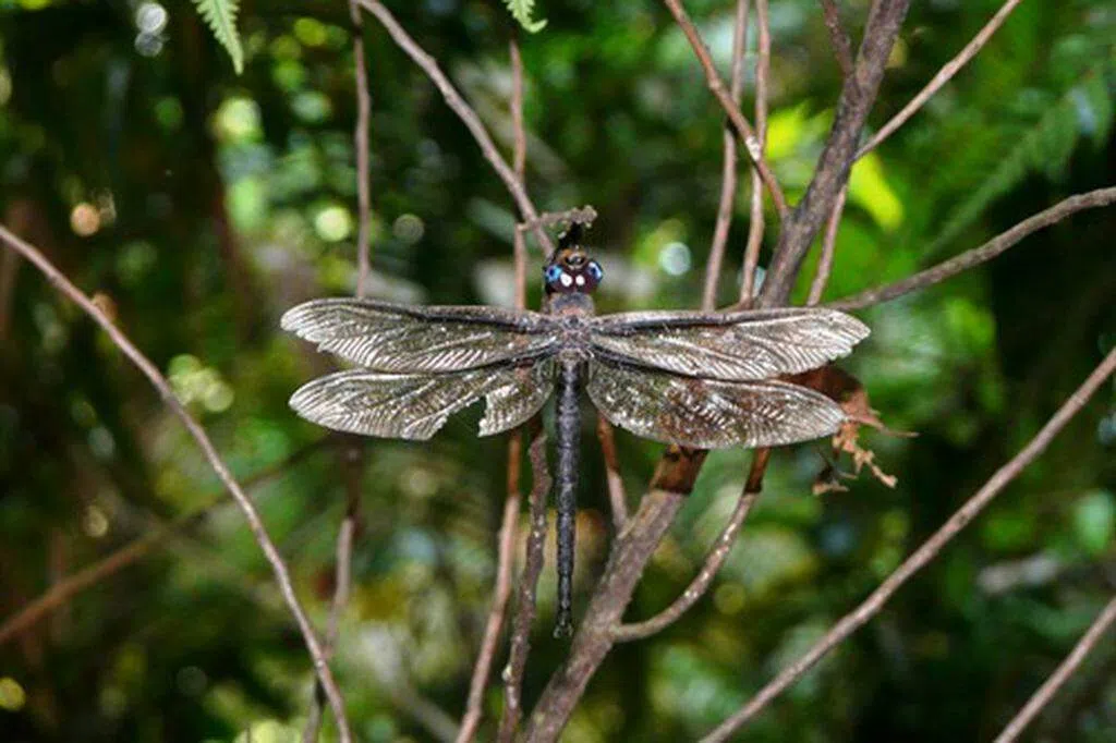 发现麻斑晏蜓的过程最是有趣。2017年10月10日,一只11公分长的蜻蜓飞入乌敏岛国家公园局办公室,工作人员赶紧为它拍照,三个小时后,一名公园局志愿者在附近的厕所又见到一只。仔细比对照片,经过专家核实,2018年严文江与同事撰写了正式的报告,确定新加坡首次发现麻斑晏蜓。
