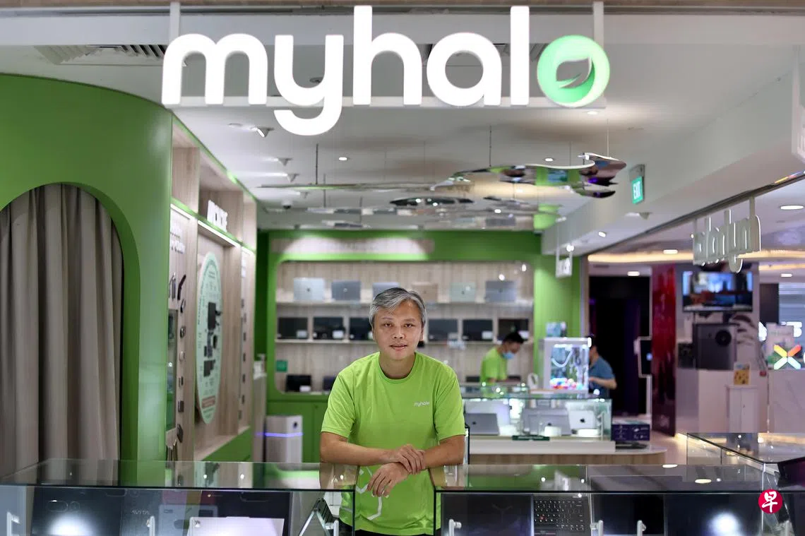 myhalo创办人陈劲晖(45岁)鼓励公众把不再使用的电子产品带到白沙浮商业城(Bugis Junction)三楼的myhalo CircularXchange,膨胀的充电器也好,旧到无法卖给其他二手店的手机也行,myhalo照单全收。还有买卖价值的,myhalo会向顾客购买,其他的会转交给电子垃圾回收商。
