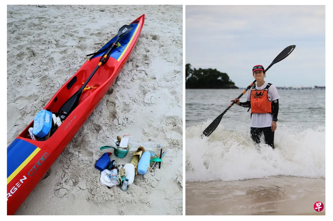 自称The Trash Paddler(“垃圾桨手”)的英文文学教师庄欣(38岁),从2019年开始,每个周末从圣淘沙出发练习皮划艇时,都会顺手捡垃圾。她说最普遍的垃圾是塑料袋和食物包装(有一次甚至发现不知是煮了没吃还是被海水泡软的快熟面),再来是各种塑料垃圾(如餐具和玩具)、网状物、绳索、盒子和玻璃瓶等;较少见但一捡难忘的有电饭锅、头盔、小抱枕、塑料椅……