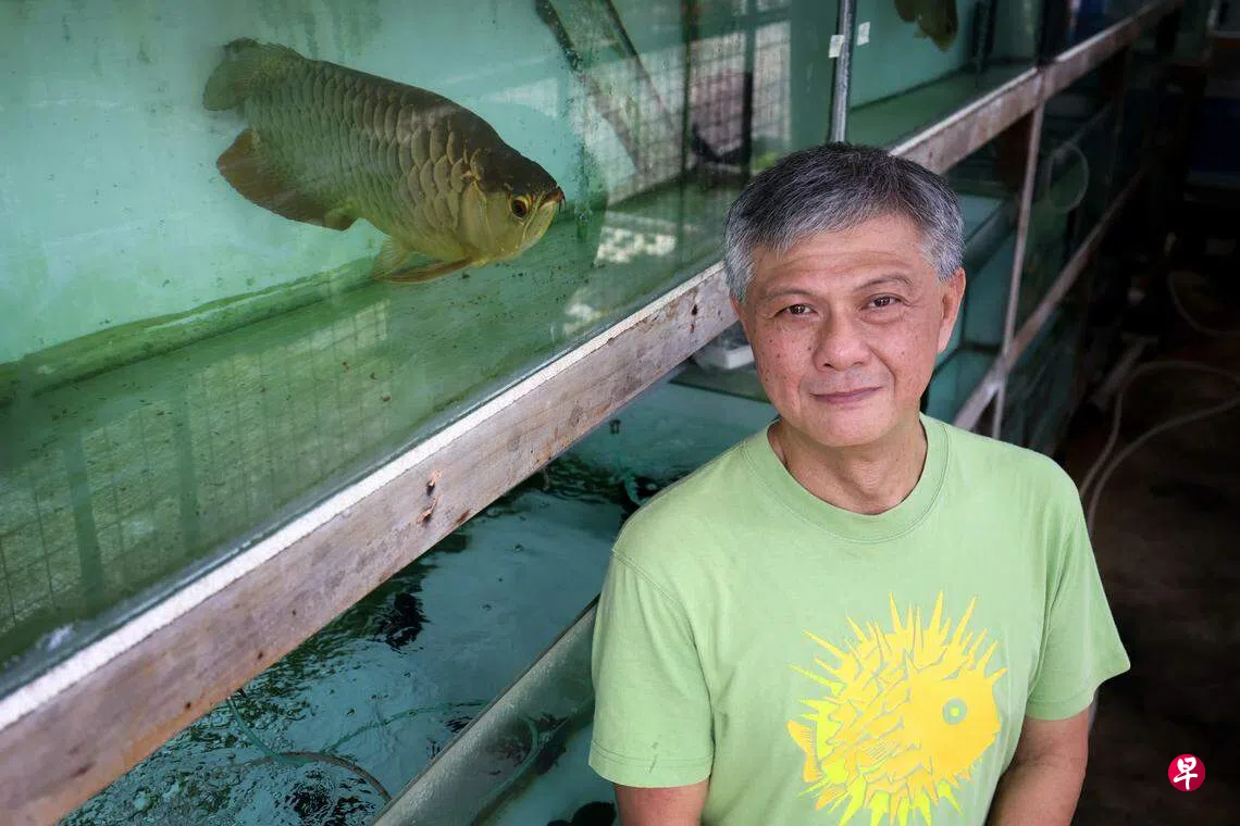 由于饲养鱼类太多,家里空间容纳不下,因此亲戚特别腾出位于实里达西农道(Seletar West Farmway)的一个小区让他养鱼,如龙鱼、罗汉鱼、金鱼、七彩神仙鱼、地图鱼(Oscar fish,又名图丽鱼)等。这里成了他第二个家,每天报到,一年不间断,大年初一也来,名副其实的鱼痴。