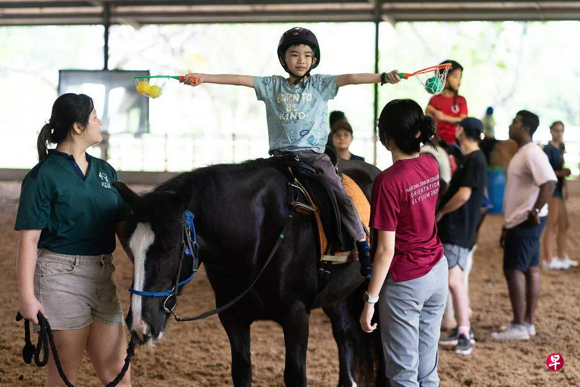 “Move-on”、“Whoa”!挺直腰板骑在马背上向马儿发号施令的不是英姿飒爽的专业骑士,而是小小年纪的特需孩童。他们正在新加坡残疾人骑马协会(Riding For The Disabled Association Singapore,简称RDA)志工的牵引下接受“马术治疗”。
